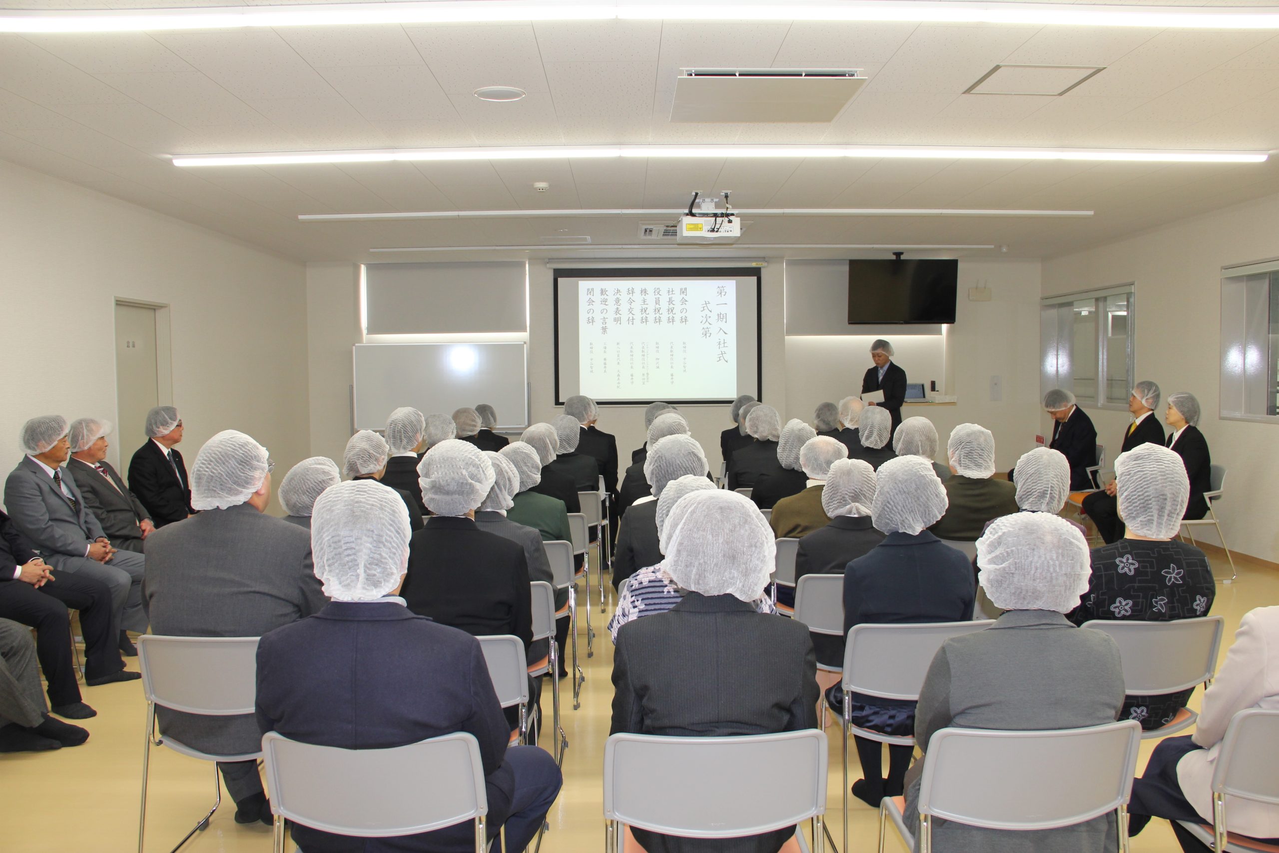 社長の藤井 学からは、昨今、植物工場が盛り上がり始めているタイミングで、鹿角の地に植物工場が建設され今日を迎えられたことの期待感や、歓迎の言葉などこれから一緒に働く仲間へのはなむけのメッセージが贈られました。