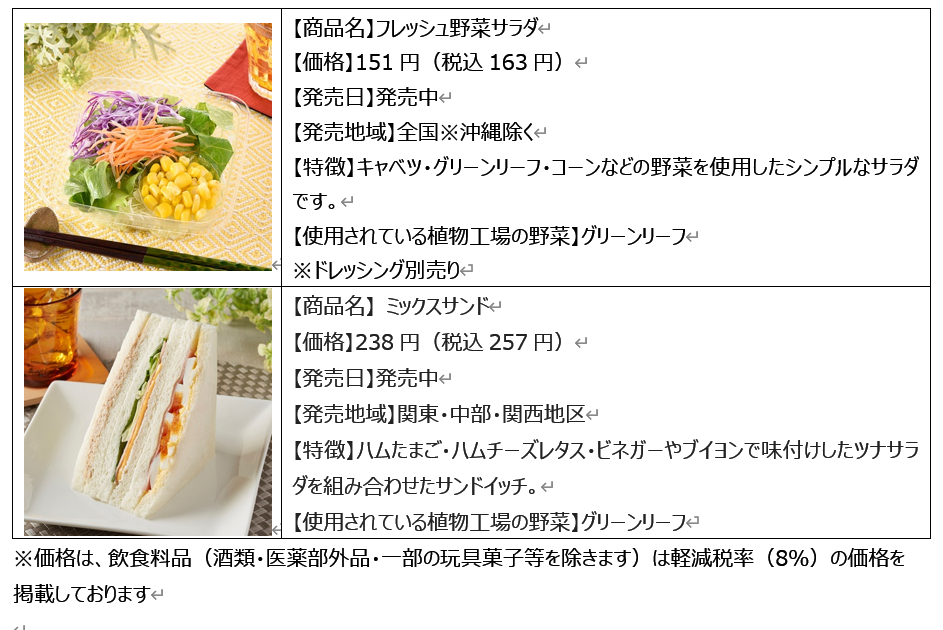 植物工場で栽培された安全・安心な野菜の普及に向けて協業 ~ファミリーマート商品への導入を拡大、全国約16,000店規模で展開、商品の共同開発も実施~