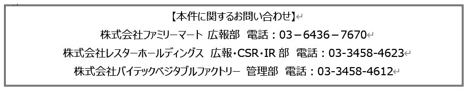 株式会社ファミリーマート 株式会社レスターホールディングス 株式会社バイテックベジタブルファクトリー