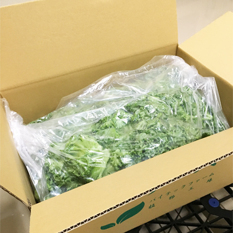 衛生的な工場で、種まきから収穫、パック詰めまで一貫生産した、完全無農薬の「きれいなおやさい」です。